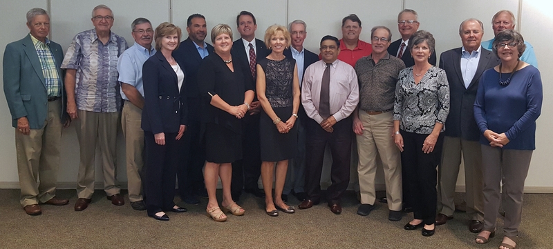 Pictured first row (left to right): Joyce Madigan, Jeanne Dau, Barbara Hoppin, Internist Kiran Joag, MD, Charles Kirchner, Ann Bacon and Linda Hance. Back row (left to right): Kim Hopkins, Bill Hill, Ph.D., Mike Stanfield, Radiologist Aldo Ruffalo, DO, Joe Dively, Medical Oncologist/Hematologist Ned Hoppin, MD, Mike Lanman, John Hedges, John Dye and Gary Philippi. Not pictured is Cleone Markwell, Jr. and Ophthalmologist Will Schubert, MD.