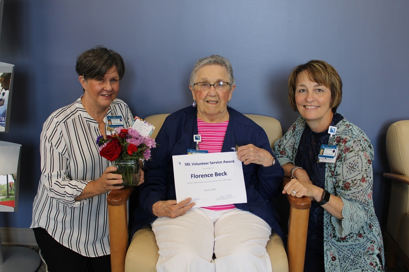 Florence Beck’s need to be around people has propelled this 90-year-old to complete over 5,000 volunteer service hours to Sarah Bush Lincoln.